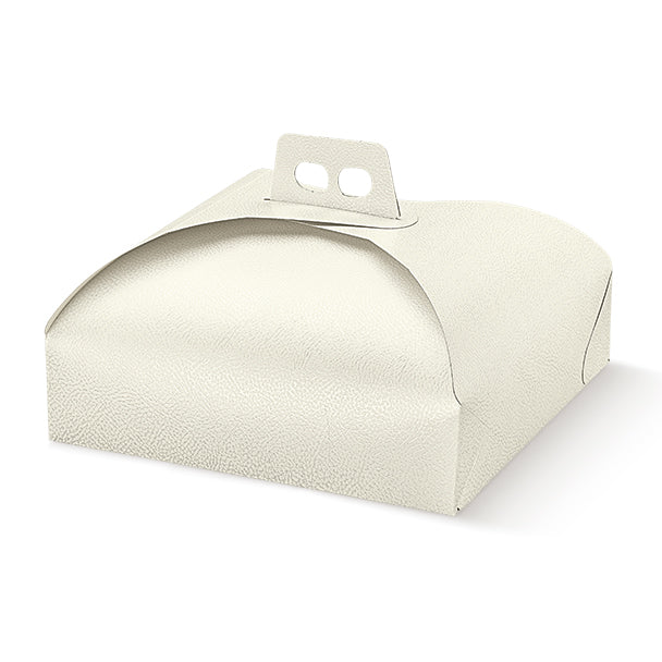 Scatola con maniglia in cartoncino teso per contenere una torta, prodotti dolciari.