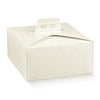 Scatola con maniglia in cartoncino teso, per contenere torte, prodotti dolciari. E' prevista un'apertura laterale per estrarre il prodotto.