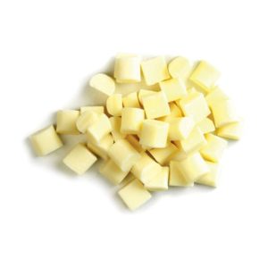 Si tratta di pezzetti di cioccolato bianco di piccole dimensioni (formato C10), termostabili in cottura, ovvero non si sciolgono completamente durante la cottura, mantenendo la consistenza cremosa all’interno dei dolci. Questo li rende perfetti per l’impasto di biscotti, muffin, plumcake, panettoni e torte da forno, ma anche per gelati artigianali e dessert freddi.