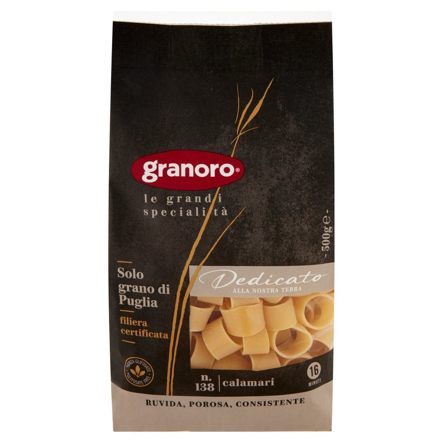 Prodotta con semola selezionata e trafilata con attenzione per garantire una superficie ruvida e porosa, la Calamarata Granoro offre una tenuta di cottura eccellente, risultando sempre al dente e consistente anche in preparazioni elaborate o rigenerate. Il suo spessore e la forma ampia la rendono ideale per piatti a base di pesce, crostacei, molluschi, ma anche per condimenti di terra intensi e cremosi.