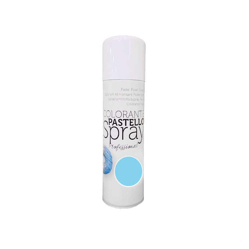Colore Azzurro Pastello Bomboletta Spray Azofree 250ml – Spray azzurro pastello senza azoto, ideale per decorazioni dolci.