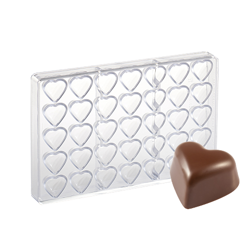 Stampo in policarbonato per praline classiche a forma di cuore.