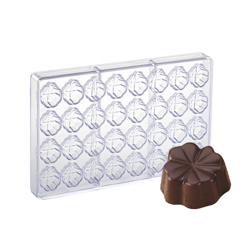 STAMPO CIOCCOLATO POLICARBONATO PRALINE FORMA QUADRIFOGLIO