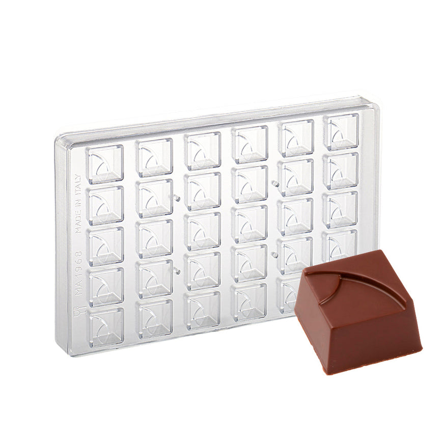 Stampo in policarbonato per praline geometriche quadrate.