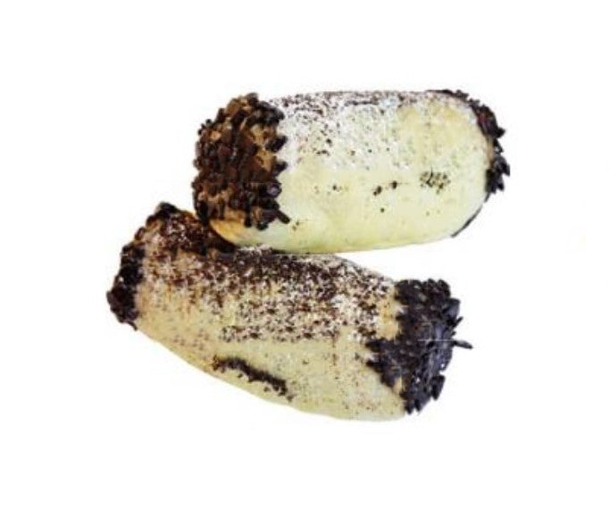 Cannoncini di frolla ricoperti di scaglie di cioccolato e ripieni di crema al caffè.