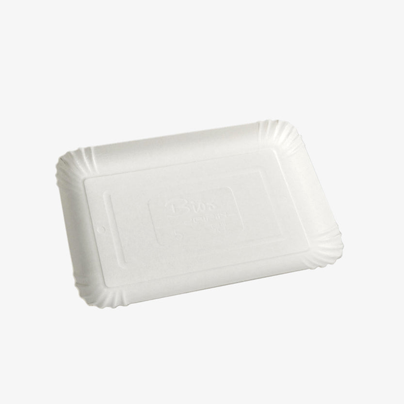 Vassoi in cartone bianco 14x19 cm. Utilizzato per pasta fresca, pasticceria, mignon, gastronomia, vassoio plastificato, per questo motivo non necessita di un coprivassoio per il contatto diretto con determinati alimenti. Confezione di 10Kg