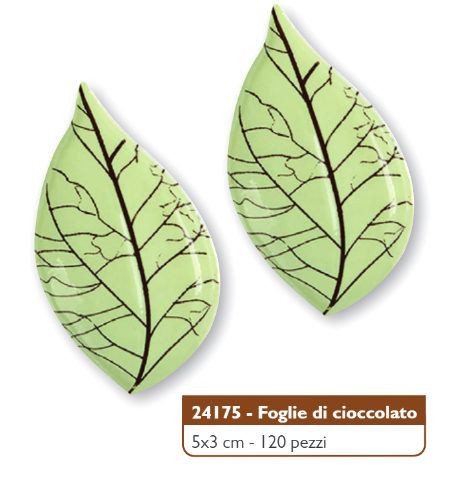 Le Foglie di Cioccolato firmate Floreal rappresentano l’eccellenza nella decorazione dolciaria: piccole foglie in cioccolato, con dimensioni intorno a 5 × 3 cm, confezionate in 120 pezzi (codice prodotto 24175). Sono realizzate con cura artigianale e pensate per impreziosire torte, monoporzioni, mousse, semifreddi e dessert al piatto, aggiungendo un tocco elegante e raffinato.