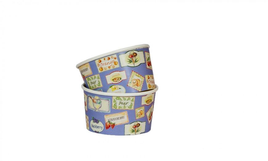 Coppetta gelato in cartoncino, Stampa Antique con fondo celestino chiaro.