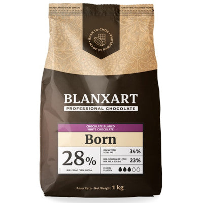 Il cioccolato bianco Born 28% Blanxart è una materia prima di altissima qualità, pensata per soddisfare le esigenze di pasticceri, cioccolatieri e chef che cercano un prodotto versatile, raffinato e dalle ottime prestazioni. Prodotto da Blanxart, marchio rinomato per la selezione accurata delle materie prime e la lavorazione artigianale, questo cioccolato bianco contiene 28% di burro di cacao, garantendo una texture vellutata, un gusto equilibrato e una dolcezza naturale mai eccessiva.