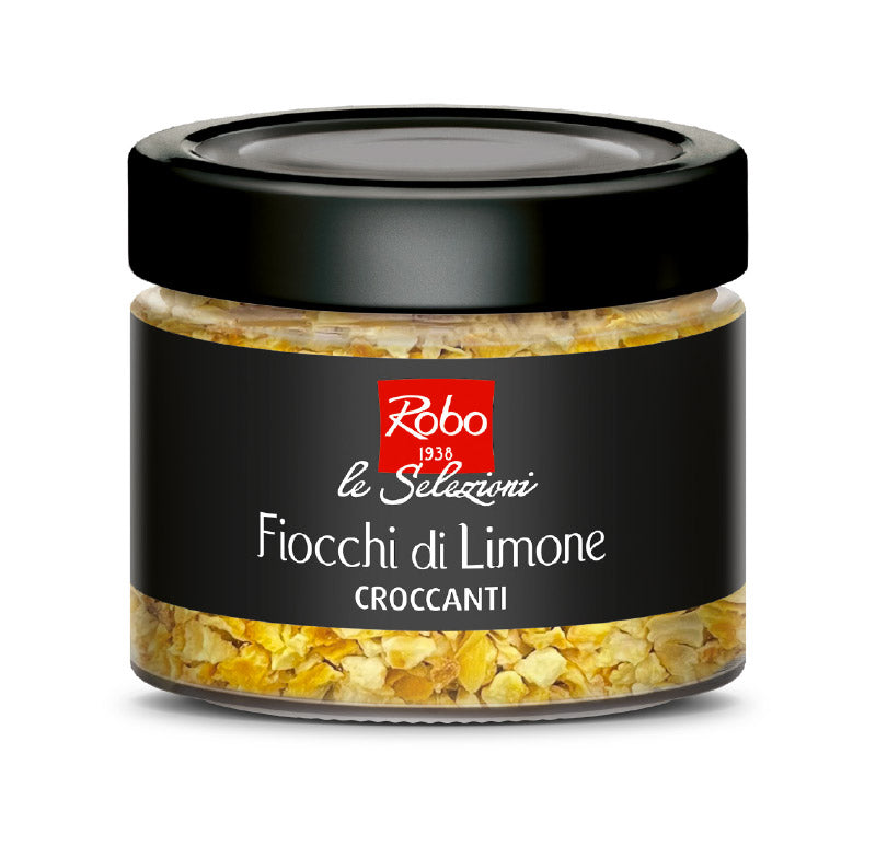 I Fiocchi di Limone Croccanti ROBO in vasetto di vetro da 80 g sono un ingrediente innovativo e raffinato, pensato per chef, pasticceri, pizzaioli e professionisti della ristorazione che desiderano aggiungere freschezza, profumo e croccantezza alle proprie creazioni. Ottenuti da limoni selezionati, lavorati con un processo che ne preserva aroma naturale, colore e gusto, questi fiocchi offrono una texture leggera e fragrante con una nota agrumata intensa e pulita.